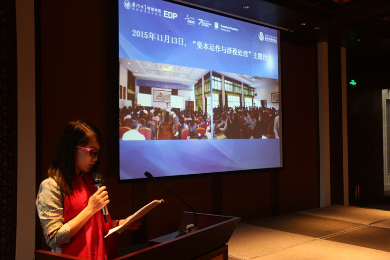 在刘会长的精彩分享过后,校友会理事会正式开始。刘会长代表校友会致辞,欢迎大家积极参加校友会活动。随后董容婷秘书长作上一季度工作与财务报告,在过去的一年中,厦大管院EDP福州校友会秉持着“财富、健康、爱心”的宗旨,开展了一系列校友活动,如“资本运作与涉税处理”主题沙龙、“闽清上莲中心小学图书室捐书”公益行、理事办公会议及交流参访等。董容婷秘书长还对2015.08.16—20.16.01.15期间校友会收入、支出进行了详细报告。