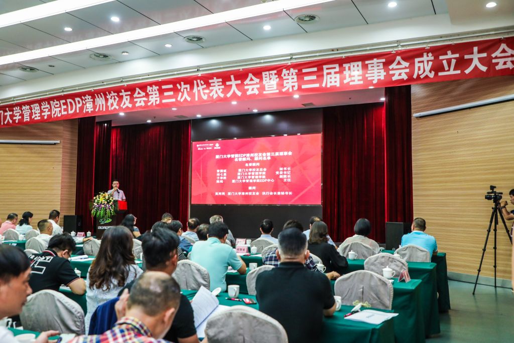 大会由厦门大学管理学院EDP中心李辰磊老师主持,他宣布,EDP漳州校友会第三届理事会荣幸聘请厦门大学校友总会曾国斌先生、厦门大学管理学院党委书记邱七星先生、副院长于李胜教授、EDP中心主任陈闯教授担任名誉顾问,厦门大学漳州校友会执行会长兼秘书长吴两同先生担任顾问。
