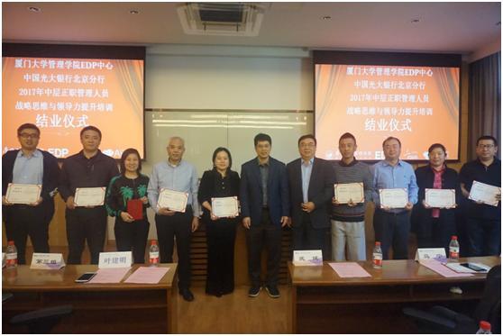 121日,中国光大银行北京分行2017年中高层正职管理人员战略思维及领导力提升培训班(第二期)于保欣丽英楼102教室举办了隆重的结业仪式。