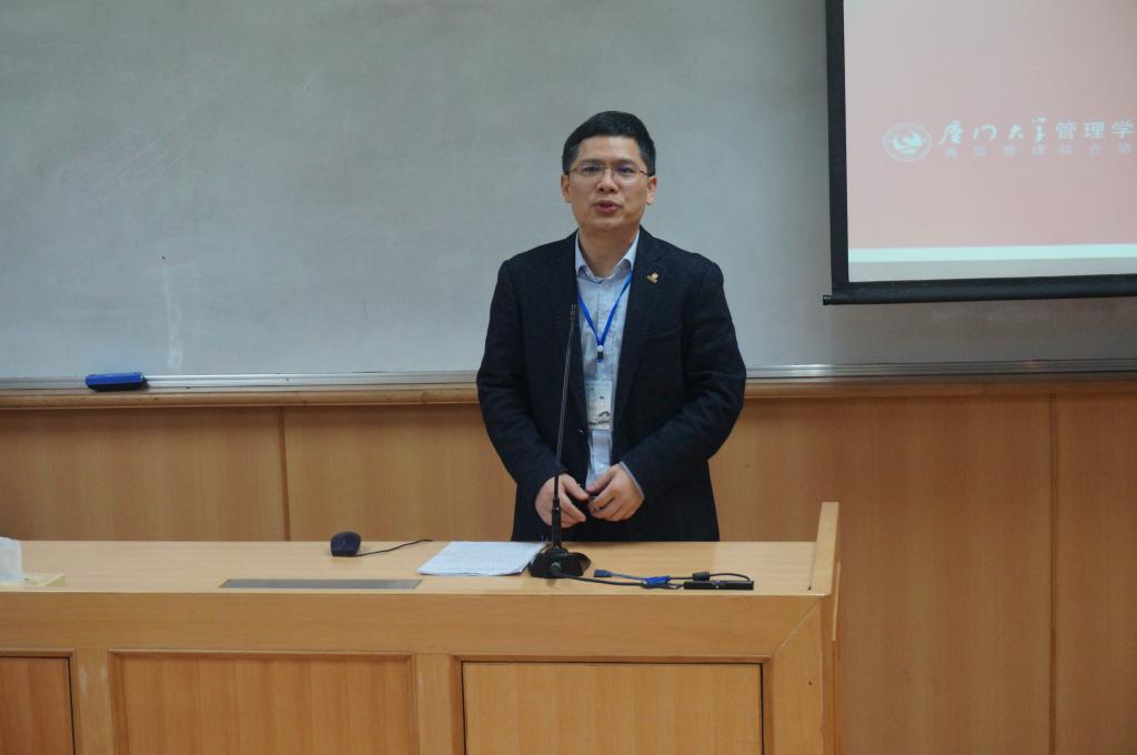 刘端填副主任代表管理学院EDP中心向长沙市开福区纪检系统的学员致以热烈的欢迎。首先,刘端填老师向学员介绍了厦门大学的辉煌历史。刘端填老师表示,厦门大学由被毛主席誉为“华侨旗帜,民族光辉”的陈嘉庚先生于1921年创办;经过秉承“自由包容,汇聚中西”宗旨的林文庆校长,“艰苦办学,自强实干”的萨本栋校长,享有“学术泰斗”的《资本论》翻译者王亚南校长等先贤的无私奉献与呕心沥血,厦门大学成就了“南方之强”的美誉。其次,刘老师向学员介绍了厦门大学的发展现状和未来展望。学校设有研究生院、6个学部以及27个学院(含76个系)和14个研究院,形成了包括人文科学、社会科学、自然科学、工程与技术科学、管理科学、艺术科学、医学科学等学科门类在内的完备学科体系。学校现有在校学生近40000余人(含海外学历留学生1657人),其中本科生19739人,硕士研究生16875人,博士研究生3164人,本研比为0.99:1。并且,厦门大学今后一段时期发展的总体战略目标:在建校一百年时全面建成世界知名高水平研究型大学,在新中国成立一百年时跻身世界一流大学行列。目前,厦门大学正昂首阔步朝着既定的奋斗目标阔步迈进。其次,刘端填老师向学员强调了学习期间的纪律要求与安全事项。他希望学员能够自觉遵守厦门大学的校园规章制度,支持并配合教学主管的班级管理。最后,刘端填老师希望学员学有所得、学有所获。