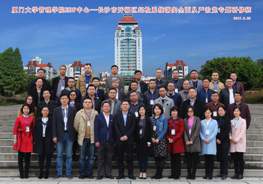 春寒料峭,烟雨濛濛,万物都在孕育着新的能量,天地已经在等待着新生命的到来。厦门大学正秉承着天地之间这种“自强不息,止于至善”的浩然正气迎接新一天的到来。春天是学习的好时光,厦门大学更是学习的好地方。2017年3月20日,厦门大学管理学院EDP中心迎来了新一批学员。他们是长沙市开福区纪检系统落实全面从严治党专题研修班的学员。上午8点30,他们在嘉庚二号楼208教室举行了简短而郑重的开班仪式。
