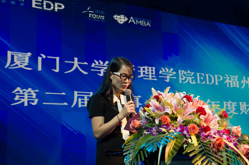 厦门大学管理学院李峰副书记在会议上发表了热情洋溢的致辞。他代表厦门大学管理学院对大会的召开表示热烈的祝贺,向来自社会各界的精英校友们表示诚挚的欢迎,对各界领导和嘉宾对EDP福州中心一直以来的支持和帮助表示衷心的感谢!