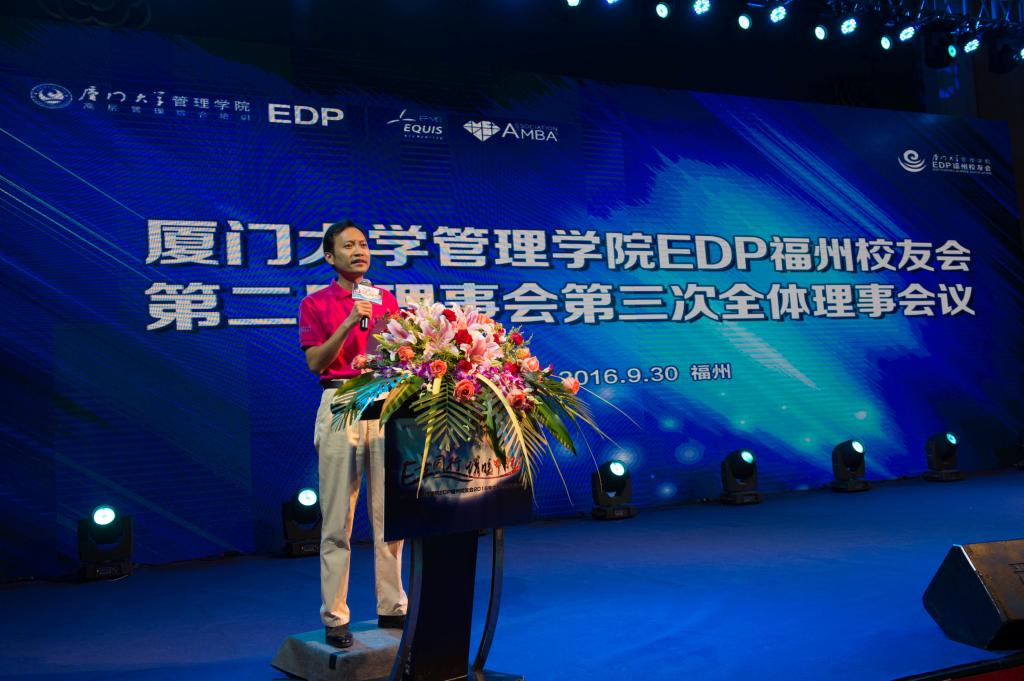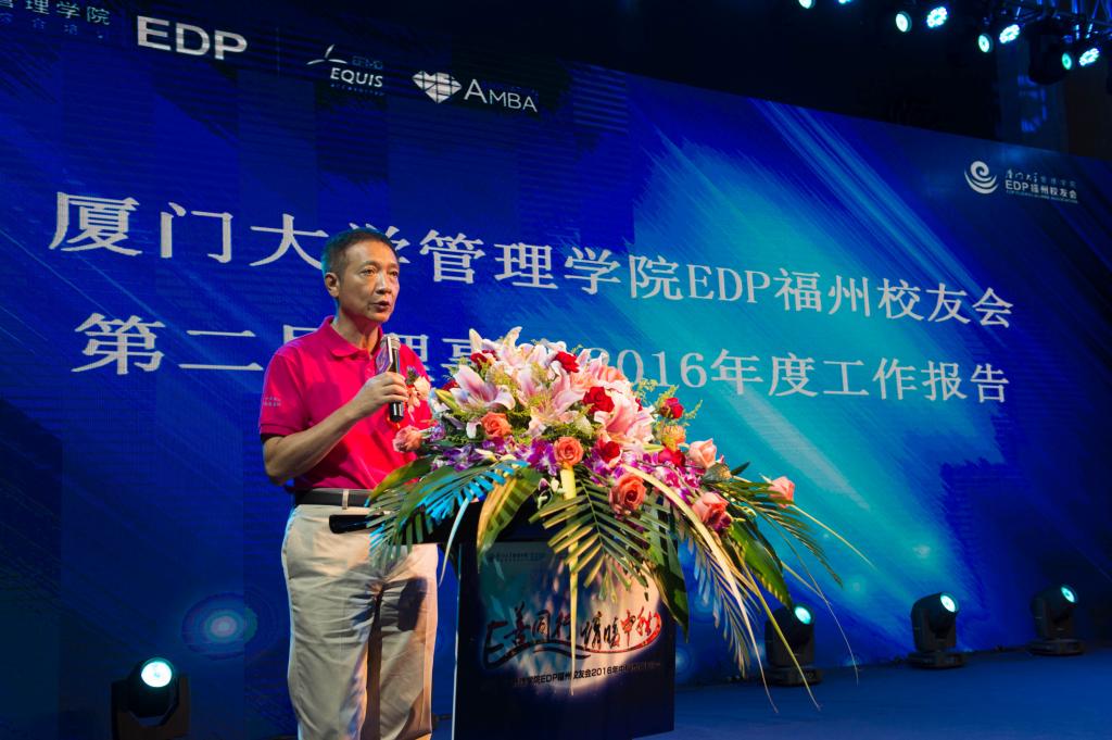 厦门大学福州校友会会长叶文振教授发表贺词,指出管院EDP福州校友会的成绩卓然,是福州校友会非常重要的组成部分,感谢大家的支持,预祝福州校友会越办越好。