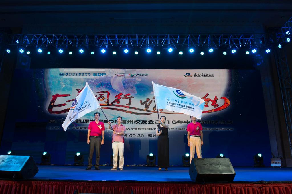 2016年福州校友会新成立了水上运动俱乐部和瑜伽俱乐部,更多元地推动校友会俱乐部的发展壮大。厦大管院EDP福州校友会秉承“财富•健康•爱心”的宗旨,致力于为学员搭建交流、交友、学习、合作、发展的平台。我们EDP福州校友会先后成立了高尔夫球队、读书俱乐部、乐跑俱乐部、羽毛球俱乐部等俱乐部组织,有着共同兴趣爱好的同学们相聚在一起,相互交流和监督,共同进步和发展。厦门大学校友总会秘书长曾国斌先生和厦门大学管理学院党委副书记李峰老师分别为水上运动俱乐部揭业冰会长授旗和瑜伽俱乐部刘燕会长授旗。