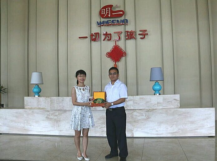明一的吴必武和陈端昌同学热情接待了远道而来的同学们。据介绍,明一国际始终致力于全球母婴营养健康事业,是国内首批拥有婴儿乳粉生产许可证企业,拥有安全奶源基地和全球自动化程度最高的婴幼儿乳粉制造基地。明一的长乐基地,拥有亚洲最大的干法生产线。