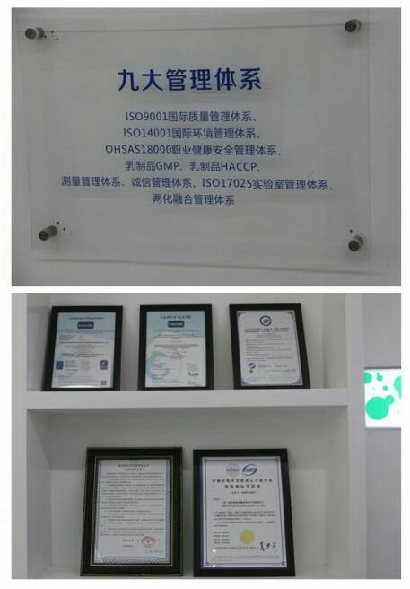 在此,同学们还看到了明一获得的各项认证证书:各生产基地均获得了食品生产许可证“QS”证书;全面实施先进的国际食品生产现代化质量管理控制体系,通过了ISO9001质量管理体系、ISO14001环境管理体系以及ISO22000食品安全管理体系认证,并首批获得了国家乳制品“GMP、HACCP”两大管理体系认证。