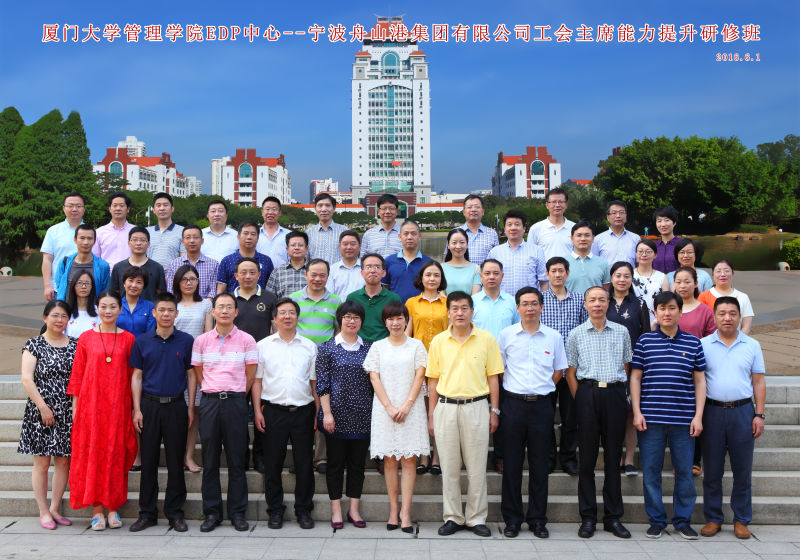夏日炎炎,凤凰花开,5月23日上午,厦门大学管理学院EDP中心—宁波舟山港集团有限公司工会主席能力提升研修班开班仪式在管理学院嘉庚二号楼201教室顺利举行。这标志着46名学员开始了为期3天的学习历程。