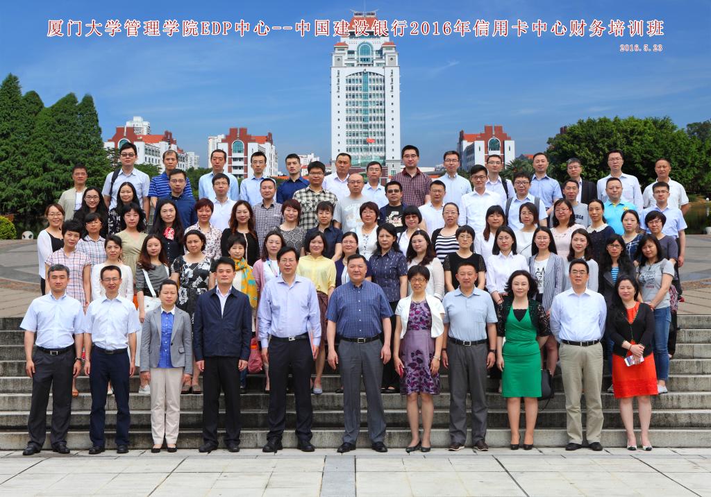 据悉,厦大管院EDP中心业已接待中国建设银行总行人力资源部、财务会计部、审计部、授信管理部、集团客户部、资金结算部、资产负债管理部、信息技术部、机构业务部,个人存款与投资部,包括此次培训的信用卡中心在内的共计十一个部门前来厦门大学研修学习。