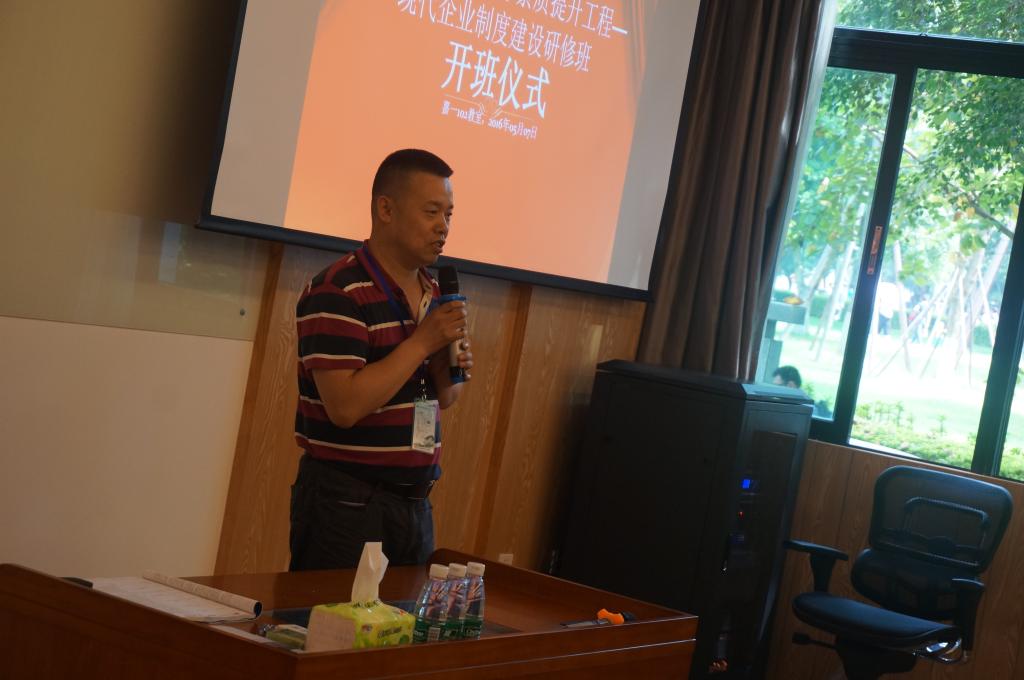 班级学员代表陈志坚先生代表班级发言,他表示非常荣幸能够在这样一个专业的平台上与在座的学员一同学习。他提到,宁夏位于内陆地区,与沿海地区相比发展差距大,但是这并不能打压抑制住企业管理者的学习欲望,希望通过7天学习有所成长,虽然不能解决企业所有的问题,但是利用所学知识发现自身企业的优劣势,进行深入的思考,就已经有所成长,他衷心地希望大家能在EDP课堂上收获知识、收获友谊!