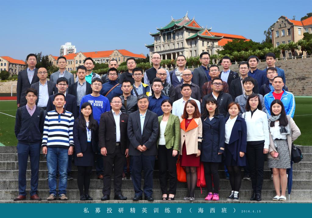 2016年4月15日下午,厦大管院EDP中心携手兴业证券财富学院共同举办的“私募投研精英训练营(海西班)”正式开学。厦门大学管理学院党委副书记洪秋霞老师,兴业证券财富管理学院院长孙国雄先生,兴业证券厦门分公司总经理于建榕女士应邀出席开班仪式,仪式由厦门大学管理学院EDP中心副主任刘端填老师主持。