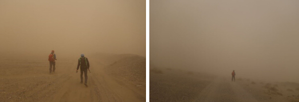狂风吹着帐篷,里、外全都变了形。沙漠里沙尘暴,绝不是大自然的赞歌,是魔鬼狞笑,是对抵抗它前行勇士的恶语!多么艰难的最后一公里!我的战友还在途中…