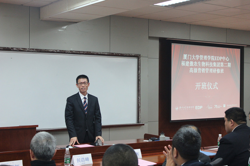 在学员们殷切期盼下,朱平辉教授向学员们介绍了厦门大学悠久的历史和人文底蕴,回忆了过去在厦门大学管理学院EDP中心顺利开班与结业的傲农的其它班级,表示将给大家提供优质的教学服务。也相信在座的各位同学能够在被誉为中国的沃顿、EDP里的黄埔军校的厦门大学管理学院学有所成。预祝福建傲农生物科技集团第二期高级营销管理研修班在厦门大学管理学院的学习之旅取得圆满成功。