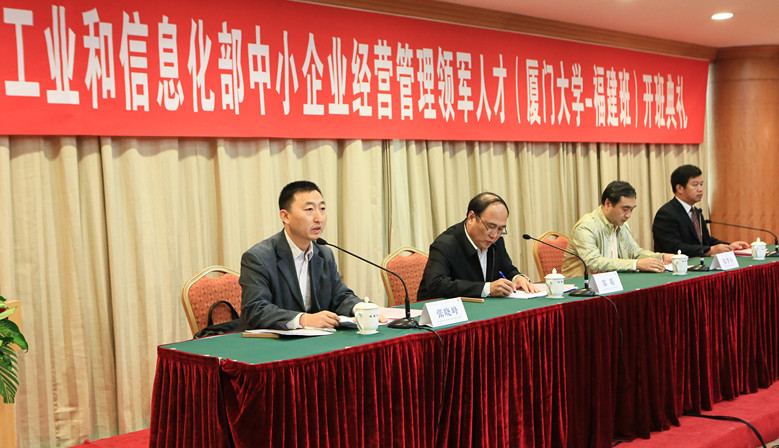 郑昕司长首先列举数据,表明中小企业在国民经济中所占据的重要地位。他指出目前经济下行时期,融资难,就业难一直都是社会普遍存在的问题,企业转型也十分迫切,要做到切实减轻企业负担,就应该提高政策的针对性。国家对如何支持中小企业及非公有制经济极其重视并且做了大量的工作,尤其是2012年4月国务院发布的《关于进一步支持小型微型企业健康发展的意见》(国发[2012]14号),既考虑当前小微企业的困难,又注重引导企业自身的动力,还提出了支持企业长期平稳发展的长效机制。除了出台促进中小企业发展的重要政策,努力营造公平环境,维护经济秩序,此次由工业和信息化部主办,福建省经济和信息化委员会、厦门大学承办的中小企业经营管理领军人才学习班就是一个落实到实处的服务。促进中小企业的发展是最大的民生,是切切实实老百姓的事。工业和信息化部高度重视此次中小企业家培训工作,为了确保本次培训项目的顺利实施,工信部专门成立了企业经营管理人才素质提升工程协调小组,全程负责此次培训项目的全过程。他希望通过厦大精心筹办的本次培训班,学员们能在学习管理知识的过程中,进一步增进彼此交流,提升企业运营能力,提高企业竞争力,推动企业和政府有效互动,共促企业发展,真正成为海西中小企业发展的领军人才。