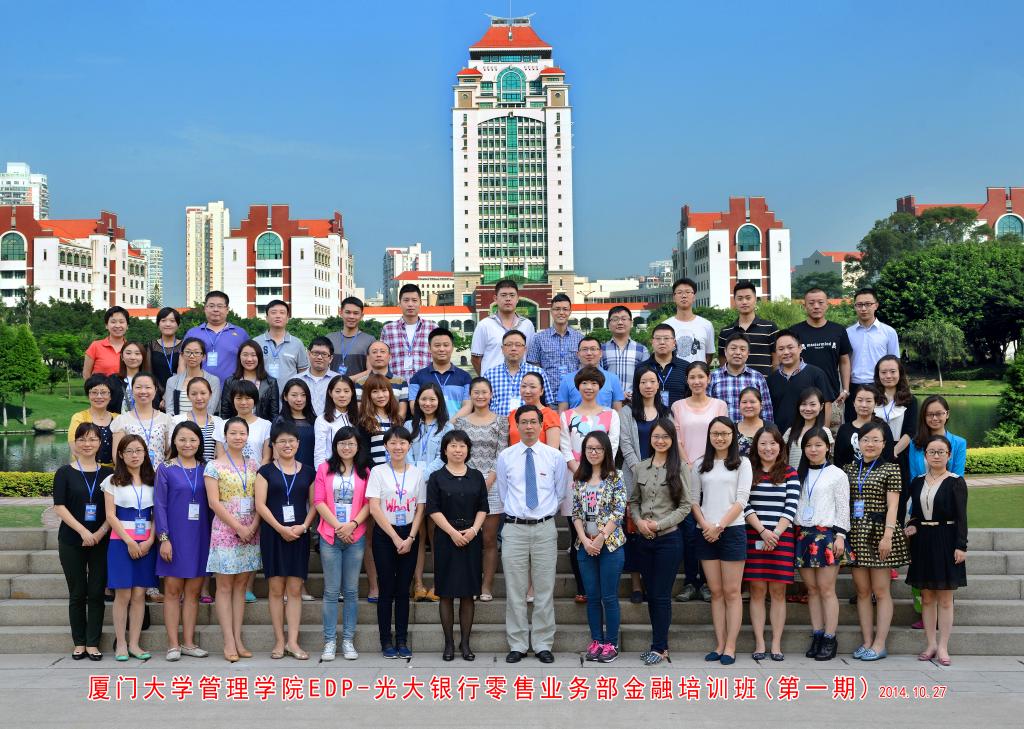 2014年10月27日,厦门大学管理学院EDP迎来中国光大银行零售业务部第一期金融管理培训班。经过三天半短暂而充实的学习,学员们倍感喜悦和收获。