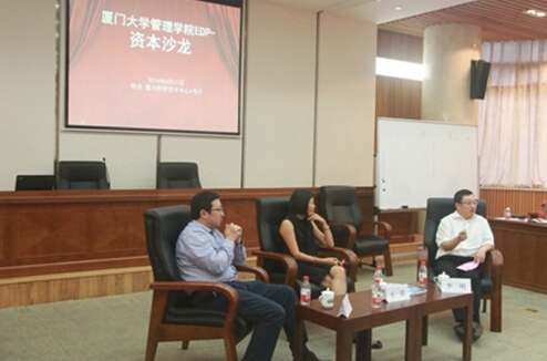 2014年8月31日下午厦门大学管理学院EDP在厦门大学科学艺术中心举办资本沙龙。特邀普华永道中国中部地区咨询服务主管合伙人李明先生、普华永道税务合伙人王蕾女士和普华永道上海审计部民营企业服务组首席合伙人徐宏先生三位嘉宾,共同为企业家学员们感兴趣的企业并购和并购整合难题答疑解惑。