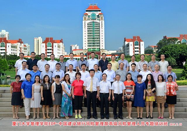 2014年7月15日,厦门大学管理学院EDP中心再次迎来老朋友——中国建设银行风险管理部高级风险管理人员专题培训班40名学员,本次研修班历时两周。当天上午,在厦大管理学院嘉庚二—208教室举行了隆重的开班仪式。厦门大学管理学院党委书记沈维涛教授,中国建设银行风险管理部副总经理田国林先生出席开班仪式分别做了精彩致辞和开班动员,仪式由管理学院EDP中心主任朱平辉教授主持。