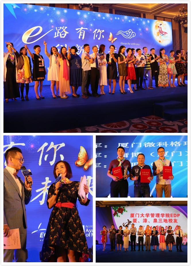 中秋佳夜,E路有你!10月11日,厦门大学管理学院EDP一年一度的校友中秋联谊晚会盛大举行,福建省工商联主席王光远教授、厦门大学校友总会秘书长曾国斌先生、厦门大学管理学院党委书记沈维涛教授、厦门大学管理学院党委副书记李峰老师、管理学院EDP中心朱平辉主任、何燕珍副主任、章永奎副主任、吴育辉副主任、陈萍副主任、银鹭集团董事长、第五届理事会新任会长陈清渊先生、惠龙集团董事长、第五届理事会执行会长林文龙先生、厦门海西明珠创新园区董事长许翰龙先生等出席本次联谊晚会,并与来自厦、漳、泉三地的新老校友同欢,共享“E路有你,创新未来”的中秋联欢之夜。管院EDP中心第十七期资本运营总裁班学员丁江,第十九期企业总裁班、第二期工信部领军人才班学员魏慧华主持本场晚会。