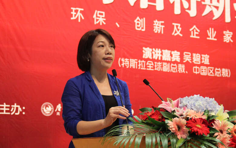 接着,吴碧瑄女士与大家分享了几个有关特斯拉创业、环保以及创新的故事。吴碧瑄女士于2013年加入美国特斯拉,担任特斯拉全球副总裁,负责中国区业务,在加入特斯拉之前,她有过20年的高科技行业工作经验,她聚焦高科技和电讯领域,在新兴互联网公司的发展中起到重要作用,曾在摩托罗拉和苹果公司任职。她说,尽管自己并未有过创业经历,但在这些高科技大公司里面工作也让自己对环保、创新和企业家精神有自己的一些思考。她通过一个个有趣的故事,向我们详细讲述了特斯拉的创业过程极其核心竞争力,并与我们共同探讨什么是创新,什么是环保。她认为,我们现在需要的是加速电气化,而不是在现有的传统汽车基础上进行改善,汽车背后是严重的环境问题,而特斯拉的创新是纯电动的,是环保的。特斯拉是创业公司,但“小而精”的优势在于集中做好一件事,就有机会改变整个世界。最后,她指出,中国不缺乏有想法的人,不缺乏创新,去做就好了。创新一定是别人没有做过的,不要去看别人怎么做,把你认为有意义的事情做好,否则你就是在模仿。
