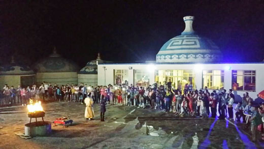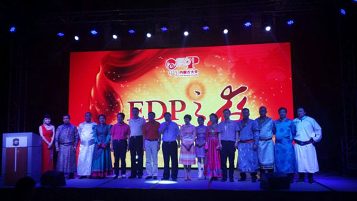 晚上,灯光璀璨,马头琴奏响,一场具有浓厚内蒙古色彩的盛宴拉开帷幕,首先内蒙古大学EDP教育中心主任张学跚致欢迎词,中国科学技术大学EDP中心主任吴林讲话,全体内蒙古学员集体登台欢迎全国各地的同学们齐聚内蒙古,共享这场别开生面的EDP之夜。各个学校竞相登场,精彩节目不断上演,欢腾着,欢笑着,大家沉醉在这片歌的海洋,酒的故乡中,今宵难忘……