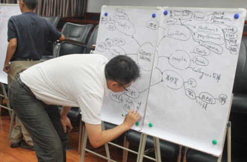 头脑风暴是创意的来源。Fxison教授要求学员针对超市中的某个环节存在的问题展开脑力激荡,寻求尽可能多的解决方案。然后找到其中一个最优选项,这也就是每个小组的最终解决方案。在第三天的课程中,学员们还进行了一个很有趣的游戏。