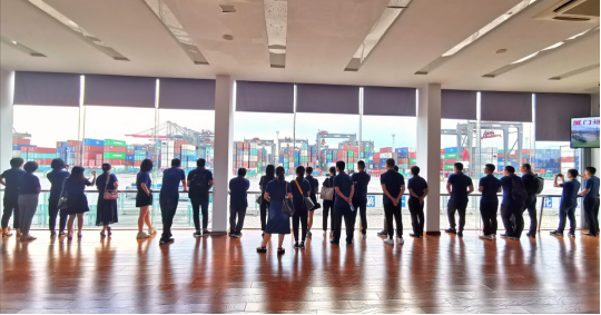 码头建设展览厅游览完毕后,学员跟随工作人员参观自动化码头控制室。