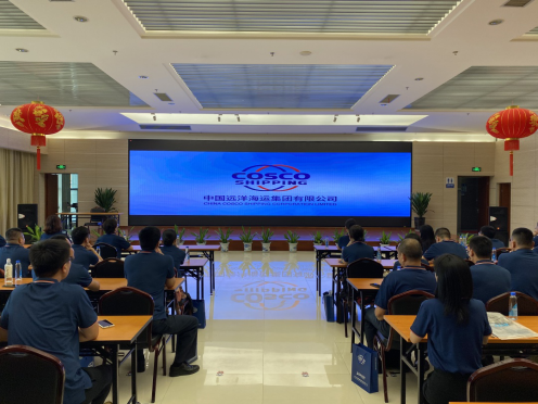 在班长蔡涵及来自中远海运的同学们组织下,T-star6期学员统一乘坐大巴前往远海码头。远海码头党办陈虹主任为我们进行企业介绍,并播放企业宣传短片。