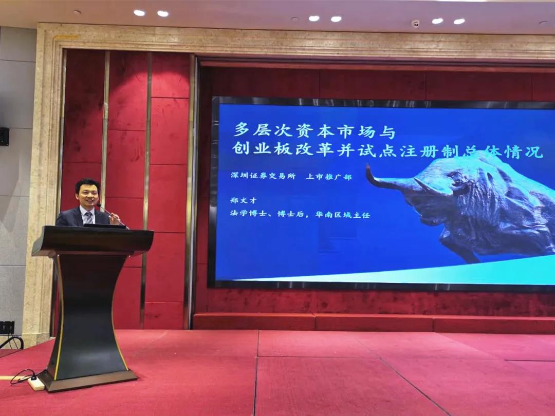 深交所上市推广部华南区域主任郑文才博士,带来专题讲座《深交所多层次资本市场与创业板改革并试点注册制总体情况介绍》。