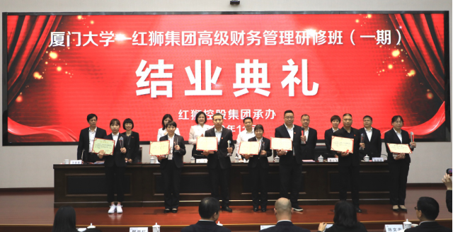 厦门大学管理学院EDP中心副主任陈萍、厦门大学管理学院EDP中心副主任吕雯、红狮集团副总经理杨志清、红狮集团经营班子章旭喜、红狮集团财务部副总经理章小飞、红狮集团行政人事部副总经理倪跃辉出席结业典礼。典礼由红狮集团行政人事部副总经理王跃良主持。