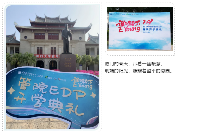 4月24日,厦门大学管理学院EDP中心举办了这场“不Eyoung”的开学典礼。典礼通过启、承、转、合四个篇章依次展开。