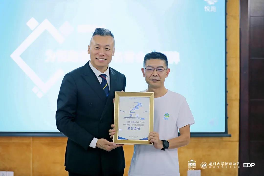 厦门大学管理学院EDP中心副主任陈萍老师致辞后,授牌仪式正式开始。侯斌先生特别为悦跑俱乐部名誉会长金建春授牌后,悦跑俱乐部第二届会长王彪,副会长庄朝阳、吕镔、姚宇伟、郑宗国、杨剑军、戴幼菊,悦跑俱乐部第二届秘书长张书松,副秘书长张天平、马振备、许雄、张驰、侯伟、王维维、谢蓉蓉、李德意、洪燕云依次接受授牌。