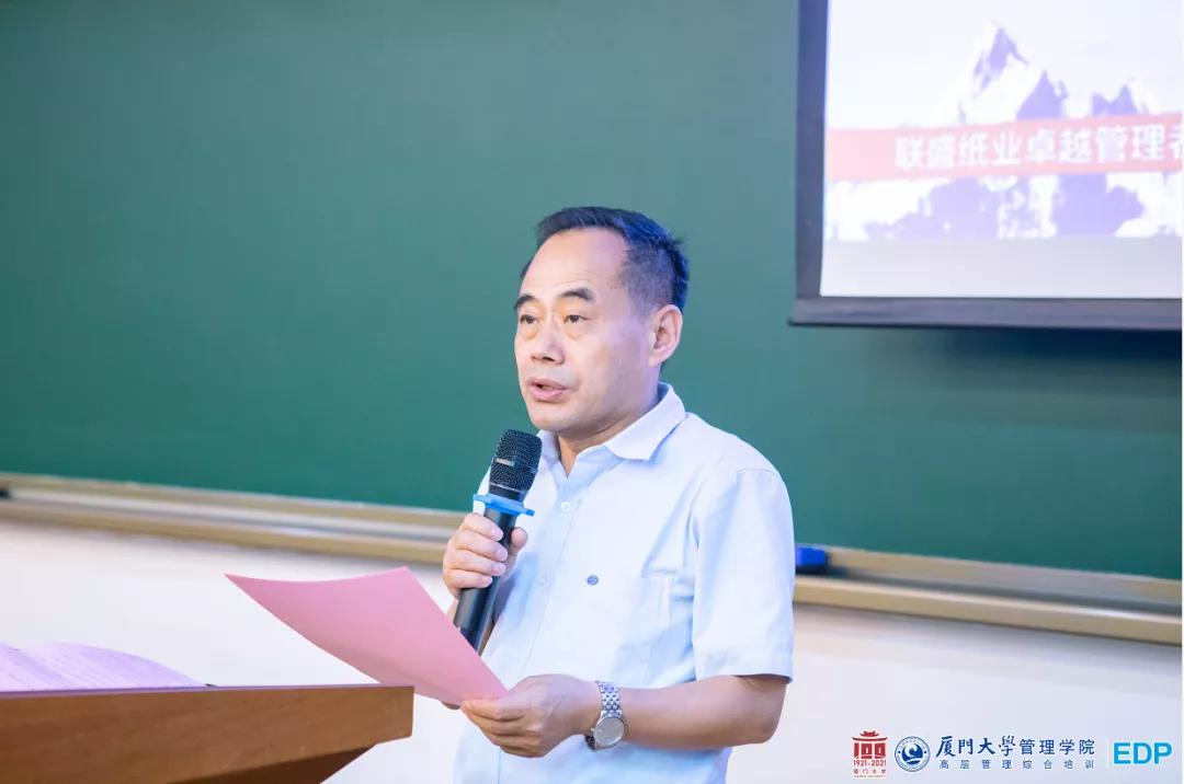 赵恺副总经理表示,人才是企业的核心竞争力,联盛纸业始终坚持“重视人才,关注员工”的宗旨,秉持“员工与公司共同成长”的理念。今年林浆纸一体化项目的落地,对于管理干部提出了更高的要求。此次联合厦门大学管理学院EDP中心重点打造的卓越管理者培养计划旨在提升管理人员的经营管理能力和领导力,实现集团新时期的高质量发展。他寄语大家在未来一年的时间中勤思考、多交流,拓展认知、学以致用,提升个人能力为联盛纸业的发展贡献力量!