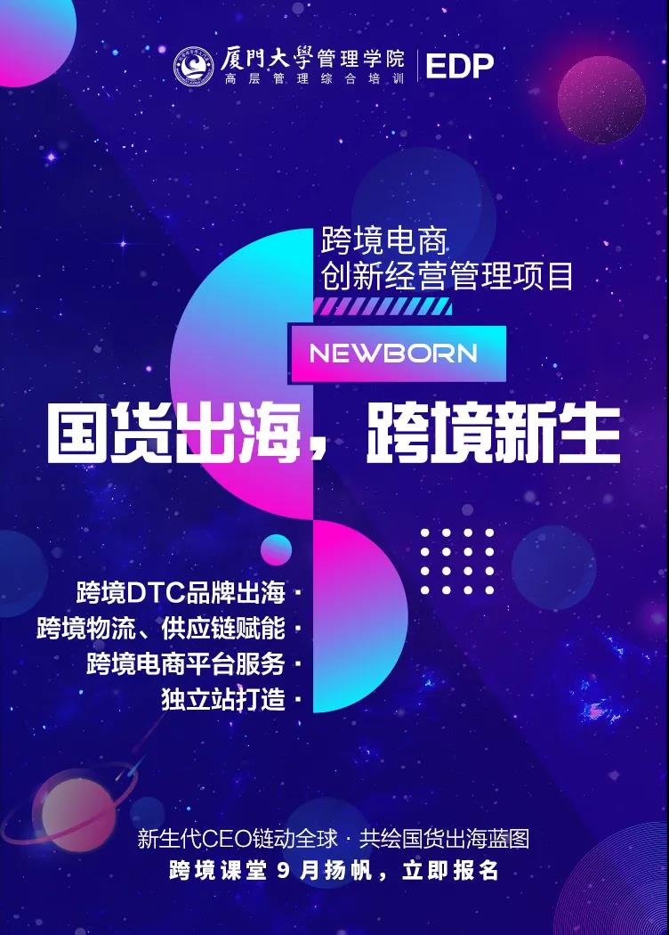 2021年9月,厦门大学管理学院EDP中心深度打造的《新生代CEO链动全球·跨境电商创新经营管理项目》正式扬帆,开启报名!该项目聚焦跨境电商行业痛点,设计符合行业特殊情境的课程内容,发挥高校和行业智慧,助力中国跨境电商管理人才培养。
