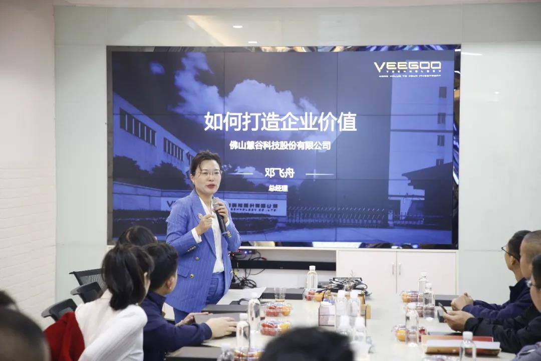 总经理邓飞舟结合慧谷在发展过程中如何做出有价值的产品、如何打造属于自己的品牌的经验进行了深入的分享:其一是公司领导层牢牢把握时代趋势,响应国家号召,选择了石英石制造业这个朝阳赛道;其二,公司领导层关注企业成长,关注人才梯队建设,积极营造人才培育环境,持续性的开展学习培训,使员工和企业共同成长。其三,公司董事长邱建平在智能化升级改造方面有非常系统的思考和丰富的专业经验。