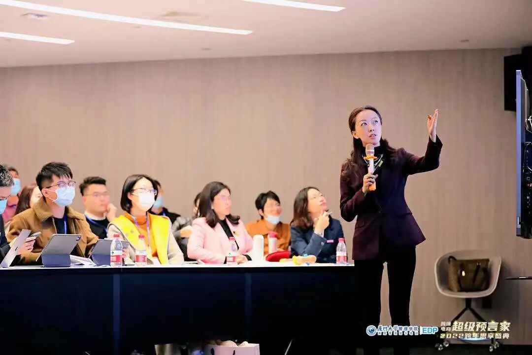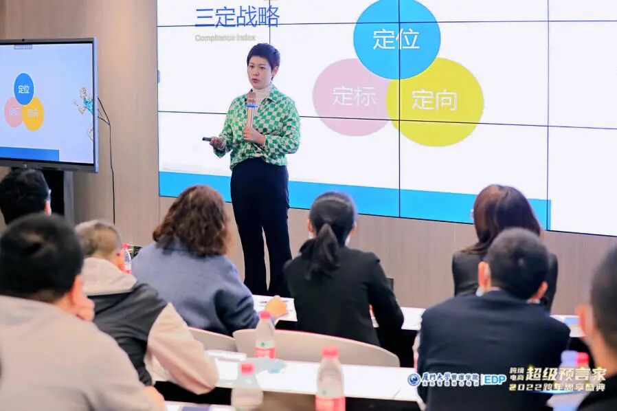 俊亿供应链董事长兼CEO徐慕瑄从企业战略的维度向同学们讲述了她创业的初衷,以及一路走来对企业经营的思考。“定向、定标、定位”三定战略指引俊亿跨境的车轮滚滚向前,摒弃外界诱惑,聚焦本企,坚定本心,做难而正确的事情。