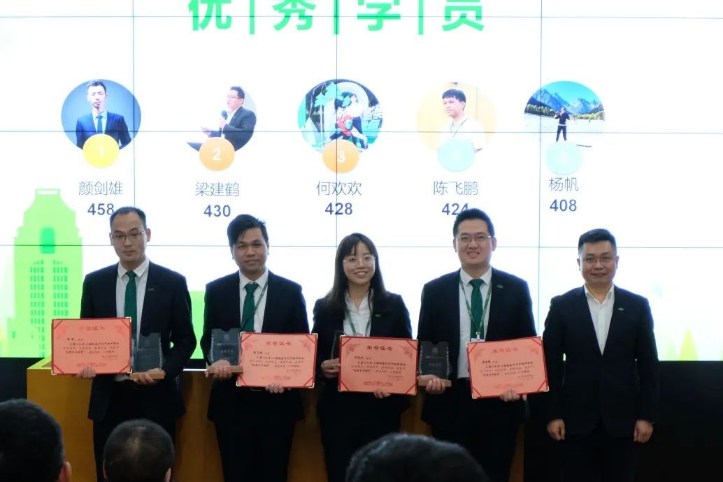 宁海博为优秀学员颁发荣誉证书,颜剑雄、梁建鹤、何欢欢、陈飞鹏、杨帆5位同学在学习全程,表现优异,获得“优秀学员”称号。