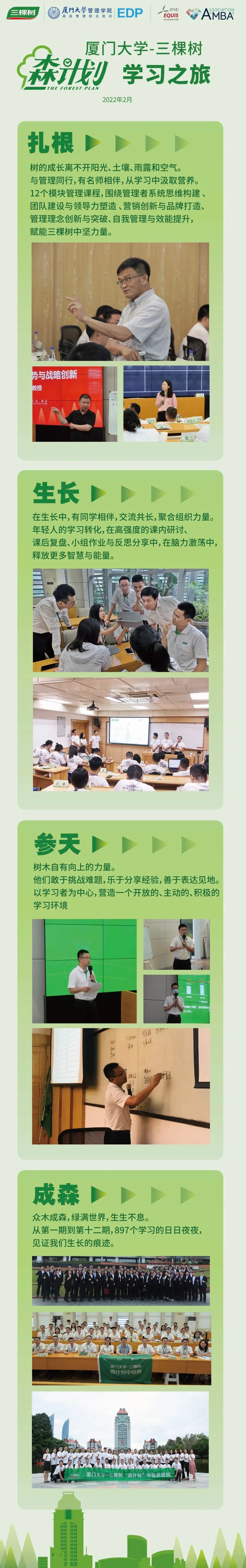 “森计划”是三棵树集团与厦门大学管理学院EDP中心打造的中层管理者能力培养项目,旨在打造年轻化、专业化、多能化精英青年团队,让中层干部实现从“专家”到综合管理者的角色转变,通过课程学习、行动学习及赋能转化等方式,快速成长为适合部长及副部长的部门负责人的接班对象。