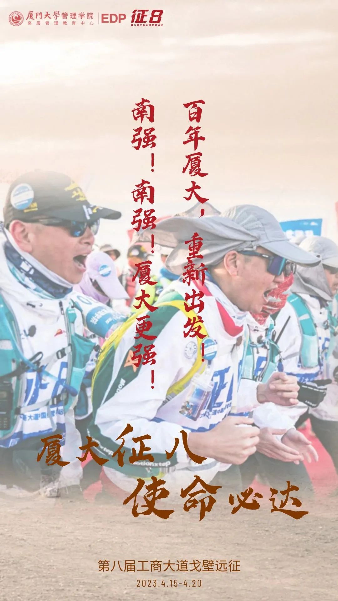 陪伴虽然是最简单的一件事情,但一旦有了责任,会让我们走的这一程变得无怨无悔。同心同行、大爱无疆是我们奔赴在梦想之路上最温暖的力量!很期待与兄弟姐妹们共同携手戈壁,这里我也恳请大家尊重规则、敬畏戈壁,听从领队、政委、副领队及教练团队的按排、指挥,一起展现我们厦大团结一致的戈壁精神!