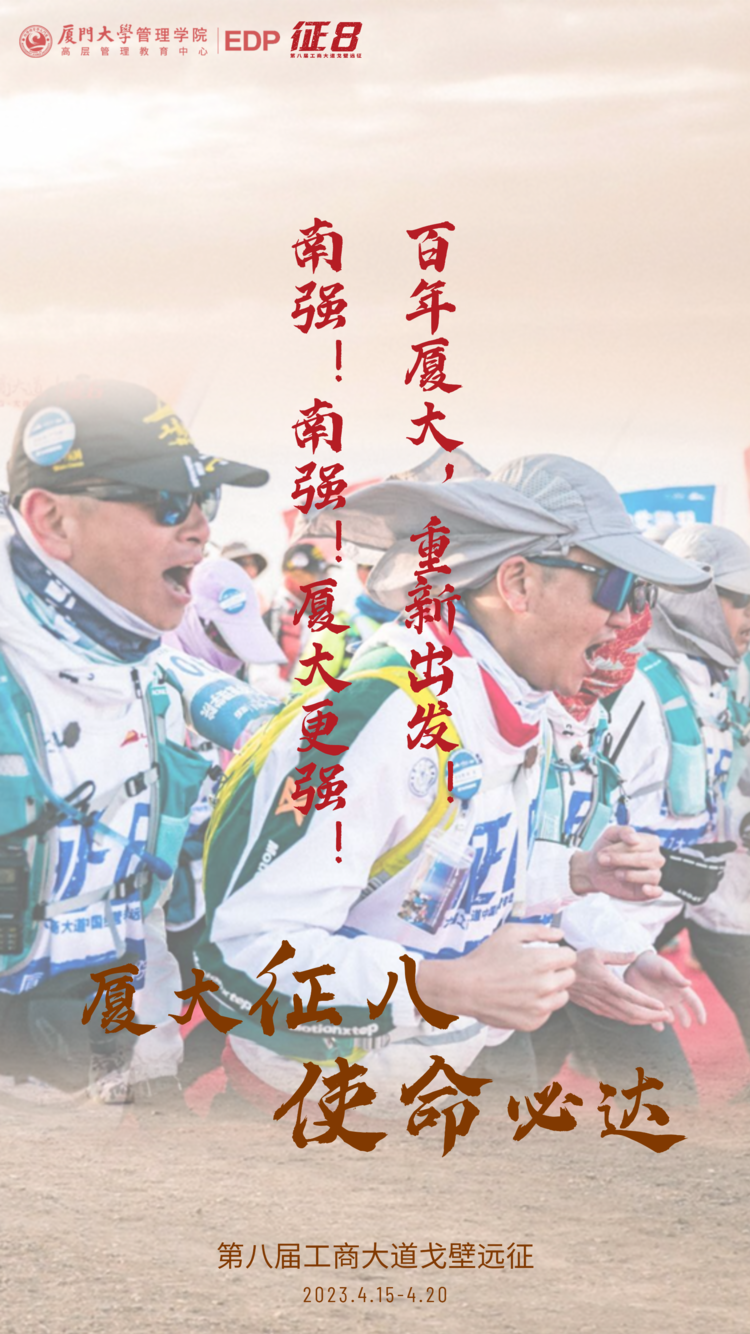 今天戈壁征赛“敢当,无我”的豪迈气概,正是玄奘精神真谛的最佳传承。而1921年校主嘉庚先生倾其所有创办厦门大学,“自强不息,止于至善”校训融入了一代代厦大人的心灵,今天厦大“征八”队以自己的严苛自律与勇敢行动完美地诠释了厦大精神。我有幸参与“征八”,心里甚是欣慰。