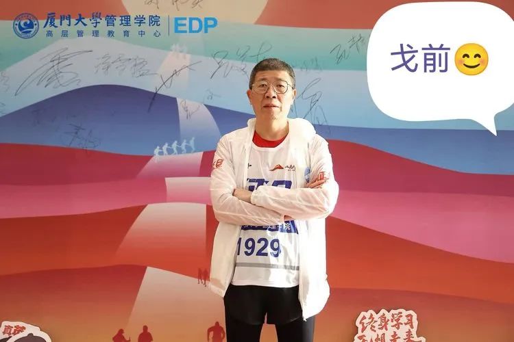 那年4月28日-5月1日启明戈、智勇戈、瑞卿戈、志刚戈远赴戈壁参加“征四”,我天天关注着他们,第一时间转发他们传回的照片。我作为厦大漳州校友会公众号总编审,及时在公众号推出了《四校友远征戈壁凯旋,叶智勇感言撼人心魄》一文。我问自己:“你敢挑战吗?你能行吗?”在他们克难攻坚勇于挑战的精神感召下,从不运动的我开始加入跑步行列,从跑800米起步每周增加1公里,半年后接连参加了武夷山35公里越野赛和都江堰半程马拉松,成绩虽乏善可陈不过均能勉强完赛,给了自己跑下去的信心,而且一发不可收,跑步融入了我的日常生活。感恩厦大管院EDP中心,因为读了EDP我的生活方式变得更加丰富了。