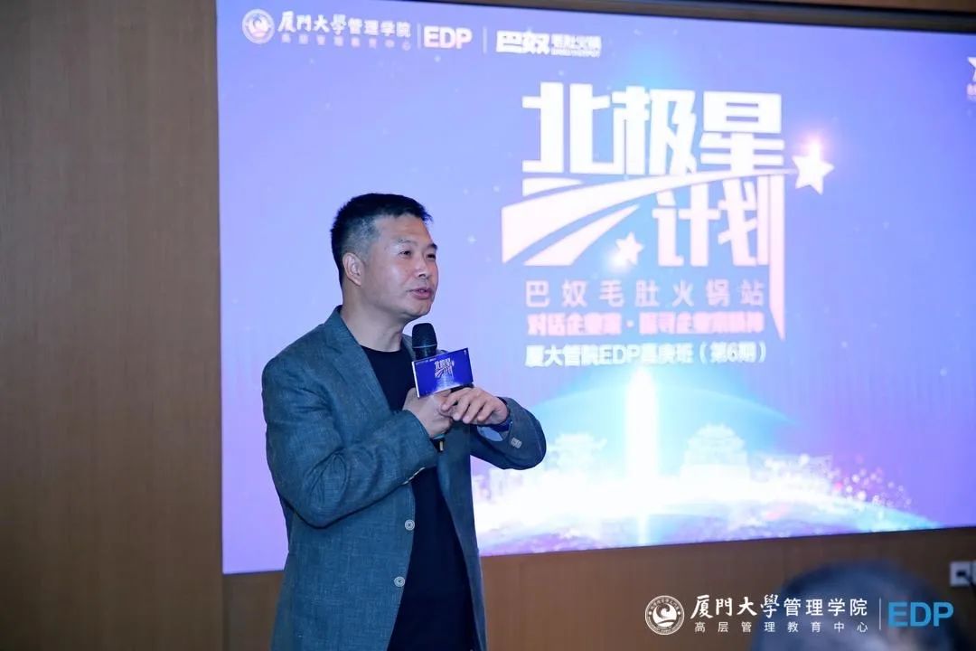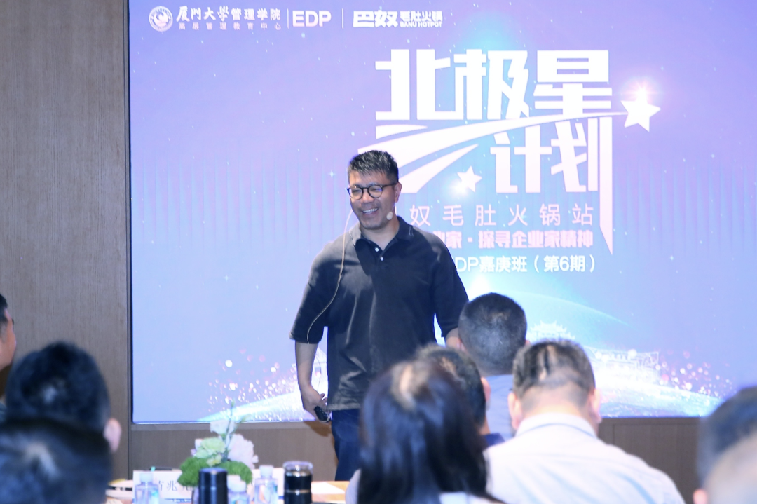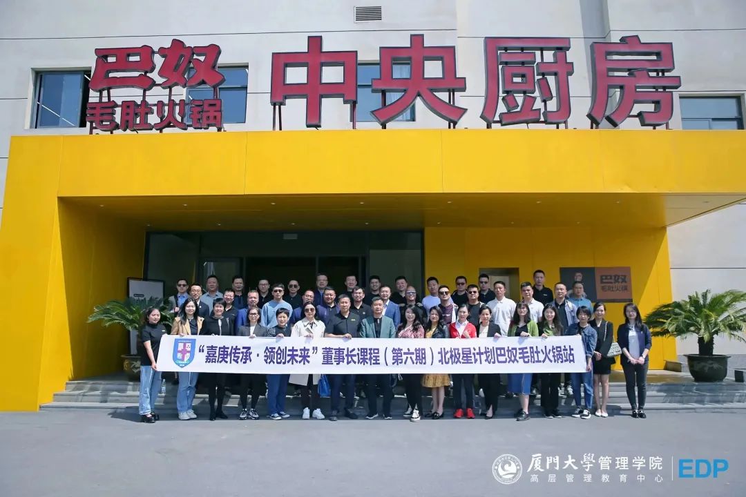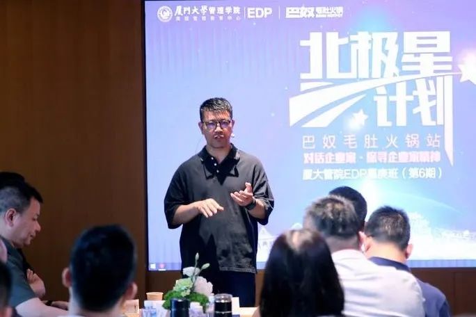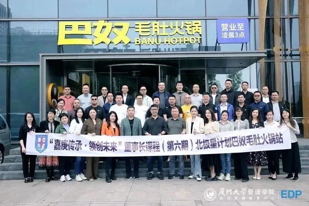 2023年5月8日到11日,厦门大学管理学院EDP中心“北极星计划”的30余名企业家学员来到位于河南郑州的巴奴毛肚火锅(以下简称巴奴),对话巴奴创始人、董事长杜中兵,探寻产品主义下的企业的战略选择、组织能力与企业文化系统构建,探讨企业家的持续学习与成长如何引领企业跃迁。