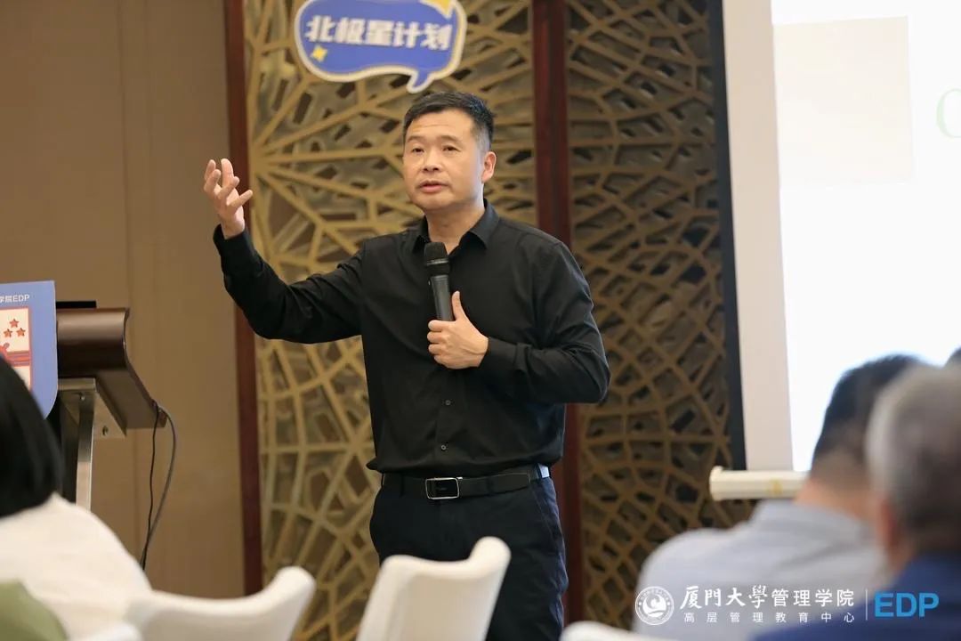 企业家对话企业家,探寻企业家精神。陈闯教授向学员介绍了厦大管院EDP“嘉庚班”和“北极星计划”的设计理念,北极星计划选择的对象不是企业,而是企业家,遴选的企业家有自己鲜明的经营管理理念,完成系统思考并形成对外诉说的观点;在“北极星计划”,学员们可以和企业家导师深度对话交流,进行自我反思与觉察,实现思想碰撞,探寻和激发企业家精神。