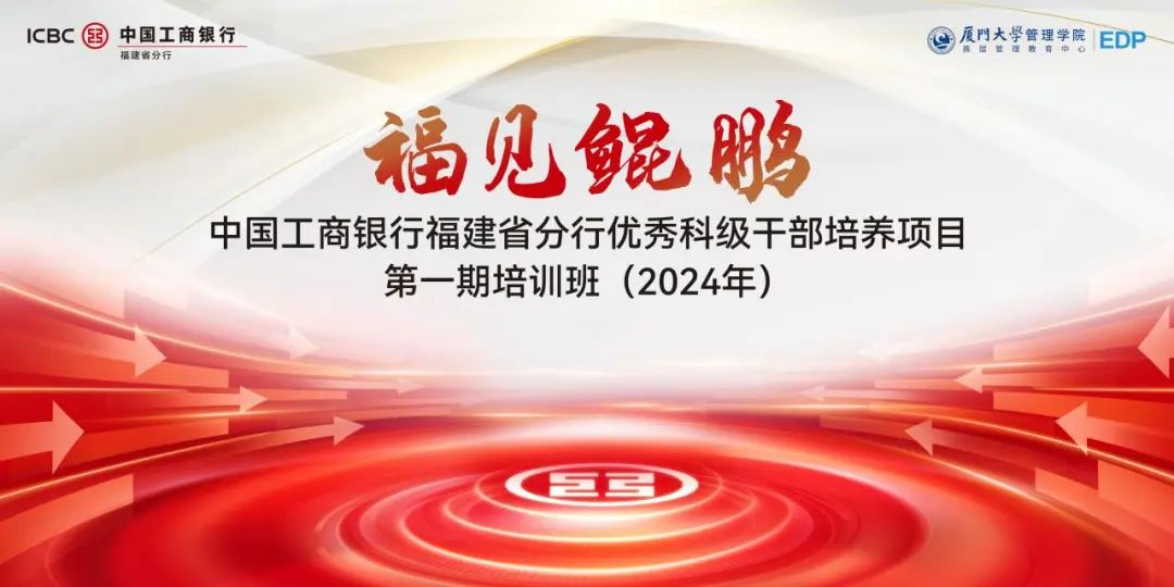 为深入贯彻中央《干部教育培训工作条例》、中央金融工作会议精神,工商银行福建分行落实新一届总行党委关于优秀年轻干部培养精神,进一步加快年轻干部培养,持续提升干部推动高质量发展能力,工商银行福建分行联合厦门大学管理学院EDP中心,于2024年4月16日启动厦门大学-“福见鲲鹏”中国工商银行福建省分行优秀科级干部培养项目第一期培训班。