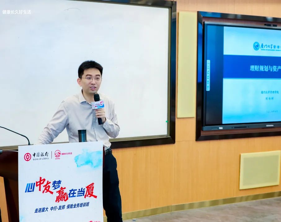 走进厦大中行-友邦保险业务培训班,来自中国银行总行、各省分行个人数字金融部负责人、友邦人寿各省银保渠道负责人进行了专题学习交流。