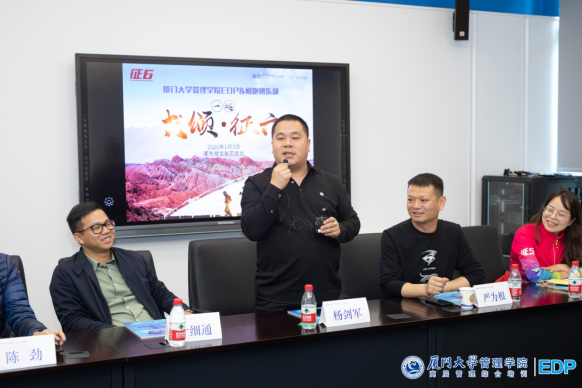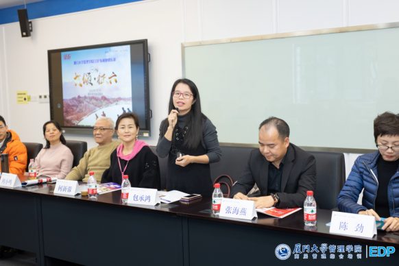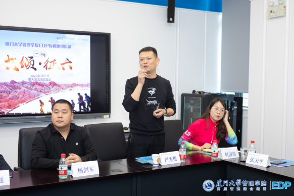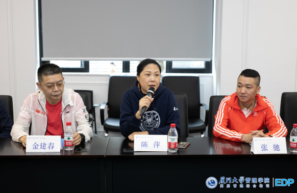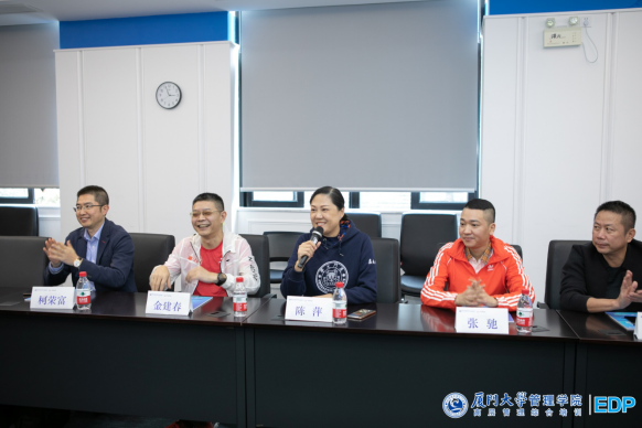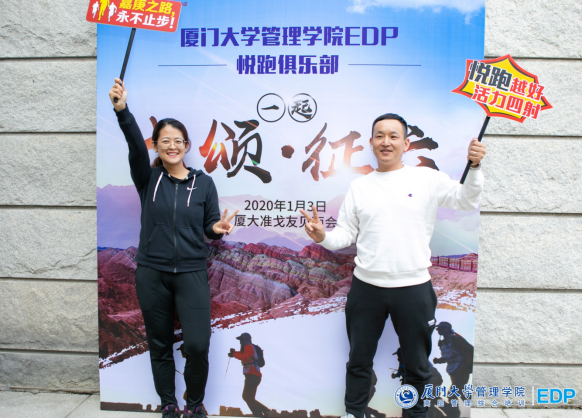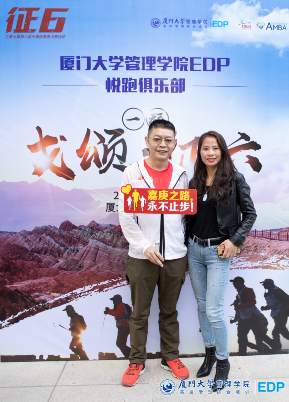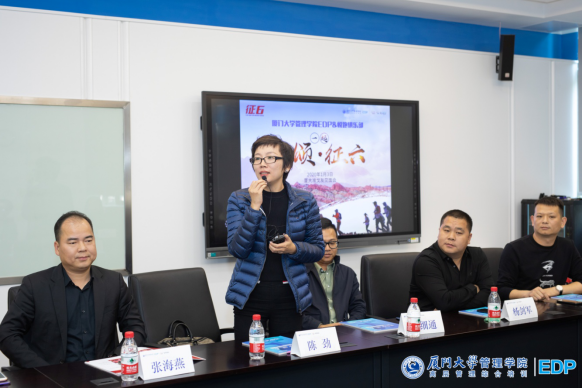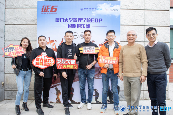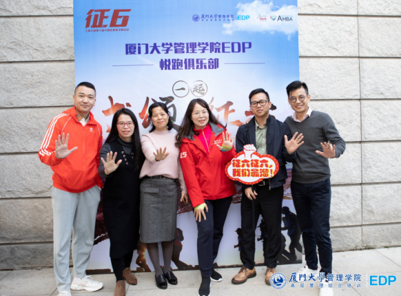 厦门大学管理学院EDP副主任陈萍老师;厦门大学管理学院EDP悦跑俱乐部会长金建春先生;悦跑俱乐部副会长张海燕先生;征五领队柯荣富先生;秘书长陈劲女士。
