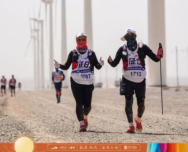 沙漠骆驼刺,崎岖盐碱地,坎坷黑戈壁,绝望风车阵,35℃高温蒸腾,肆虐沙尘暴,这是一条严峻考验体能的路,却也是一条持续滋养灵魂的路。当你在日常训练时,自律打卡,完成一天又一天的任务,看着自己的配速、心率愈加协调时,你知道,人生的路,每一步都算数;当你在无边风车阵中,克服绝望情绪,努力奔跑前行时,你发现,眼前的困难只是暂时的,战胜心魔,再抬头就是一马平川;当你超越“无我”、“不东”,看到“凯旋”旗帜时,成就感,荣誉感再次激发你加速冲刺,你懂得, 胜利属于勇敢的你,执着的你!