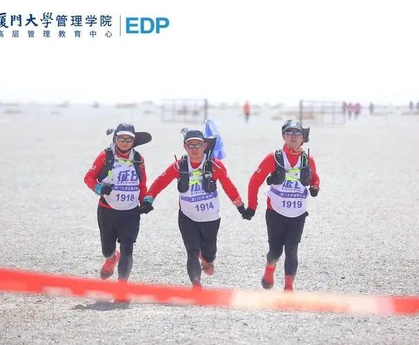 整理行装时,收到了萍姐的语音提醒:"**,你去戈壁带个小毯子,再带一双棉拖鞋放松……注意保暖很重要……”;赛前一天,又接到信息“保护好自己哈,每天跑完拉伸放松”,殷殷叮嘱,句句关怀;沙尘暴之夜,萍姐、滨滨、弛弛身在厦门、敦煌,却在群里一直关注、陪伴我们,直到风沙渐弱方才安心休息,第二天又早早安排好各种补给、鲜花,迎接我们;深夜抵厦,惊喜地看到琳子手捧鲜花在那里张望,不由自主地张开双臂,彼此拥抱。还有,还有,无论是集训时,还是戈壁上,体力不支时,总有队友拉着你跑,有队友接过你的背包;不管多晚到达,总有队友陪你跑完最后1公里,有队友在终点给你大大的拥抱;当你落单时,友校的戈们伸出了援手,邀你同行;当你饥渴难耐却水尽粮绝时,同行的他/她把送到唇边的补给、水递了过来。