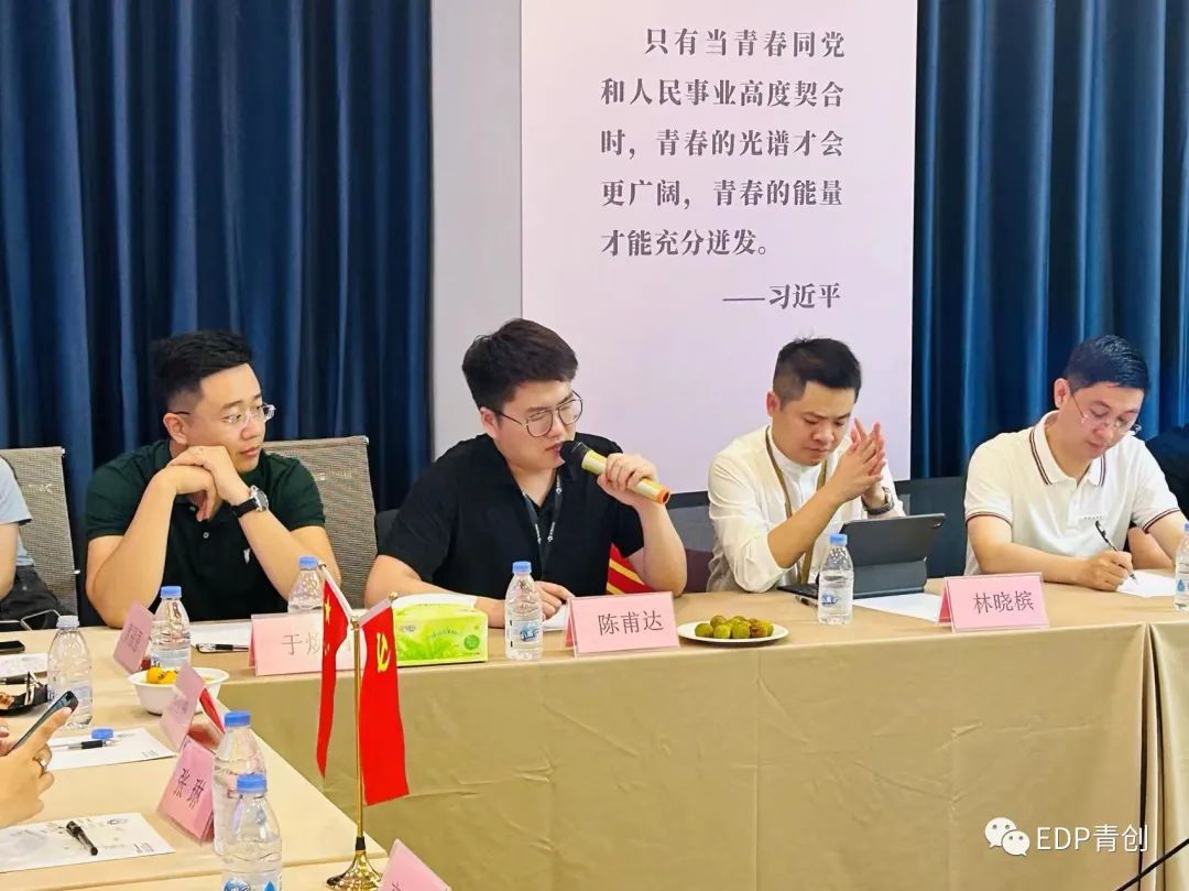 2023年5月19日,厦门大学管理学院EDP福州校友会青创俱乐部(以下简称“EDP青创俱乐部”)来到福州市大榕树创意产业园企业参观交流,并与福州市青年企业家商会就“凝心铸魂强根基,时代青年迈征程”召开主题座谈会。厦门大学管理学院EDP中心副主任吕雯老师参与此次活动。